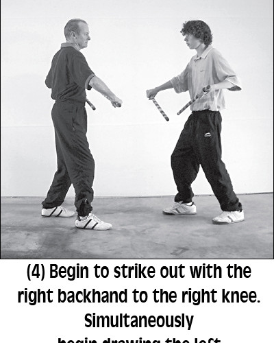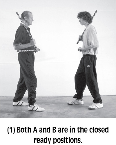 The training drill starts off in a closed position with two sticks, one under the other. The closed position is considered in actual fighting to be a transitory or transitional position and is not to be held for long periods. The stick held back while the other is striking, is considered the guard or guarding stick.