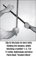 One was when I was training with a student from another Grouped Balintawak school, while I was the attacker or leader. In defence, he did not clip at all. This allowed me to easily move and redirect my weapon, (after the initial contact with his blocking weapon), less than an inch around and under his emptyhand to strike him. This redirect counter while not a full power strike, would enable me to set the student/opponent up, for the powerful finishing off strike to the head, that I would deliver while the student is in pain and distracted into not defending properly.